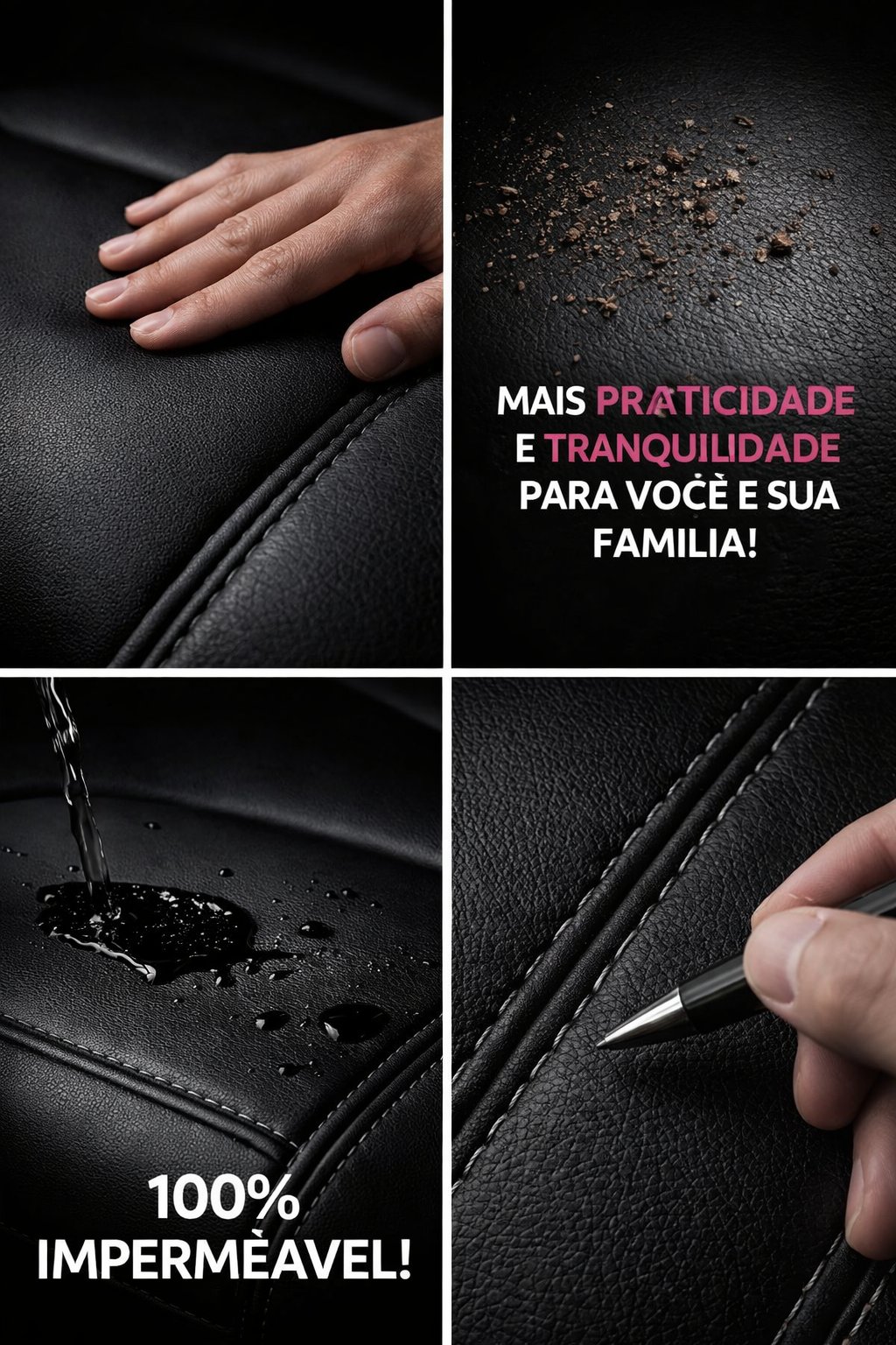 Couro legítimo com costura reforçada que transforma o interior do seu carro.